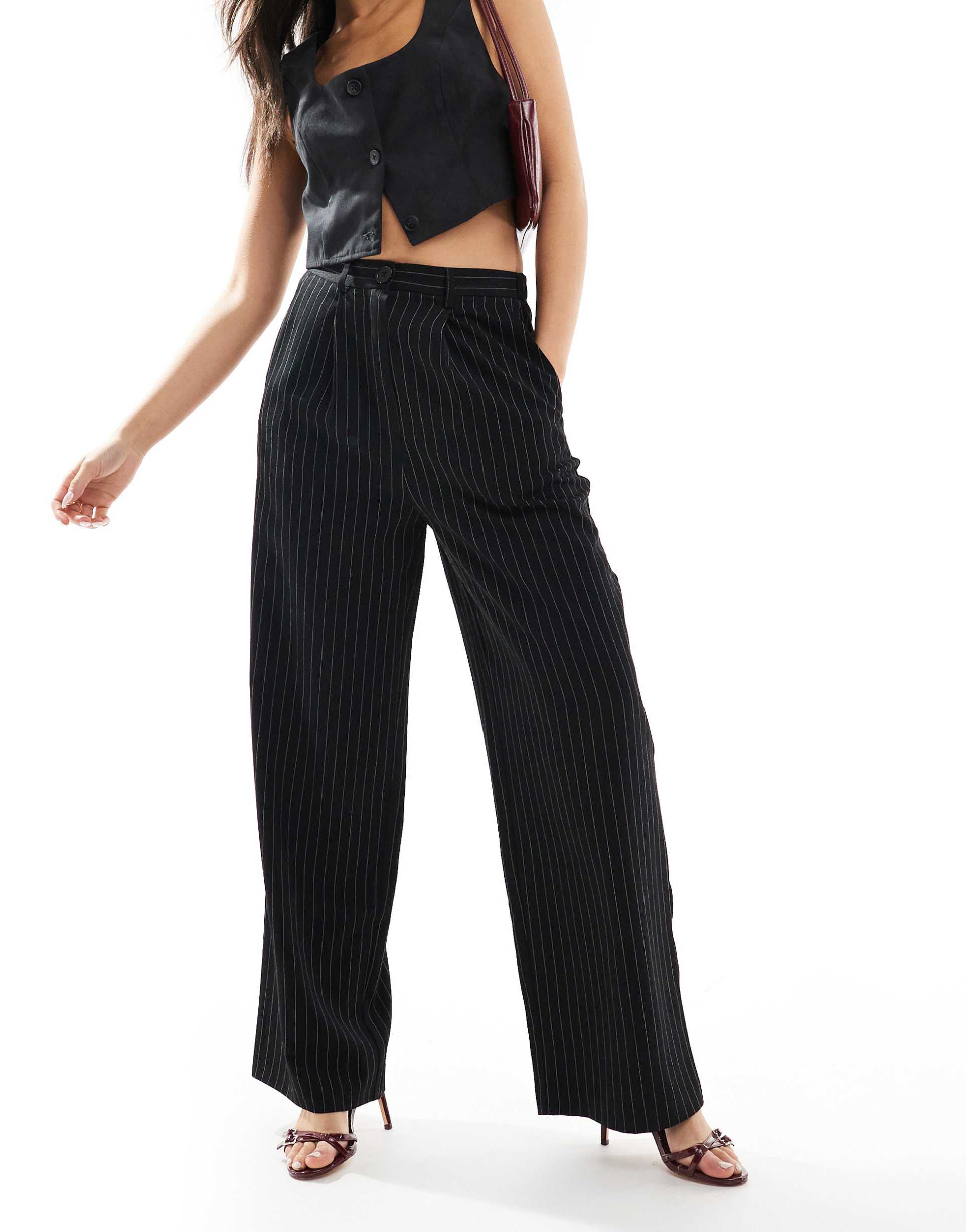 MISS SELFRIDGE TAILORED WIDE LEG DAD PANTS IN BLACK PINSTRIPE