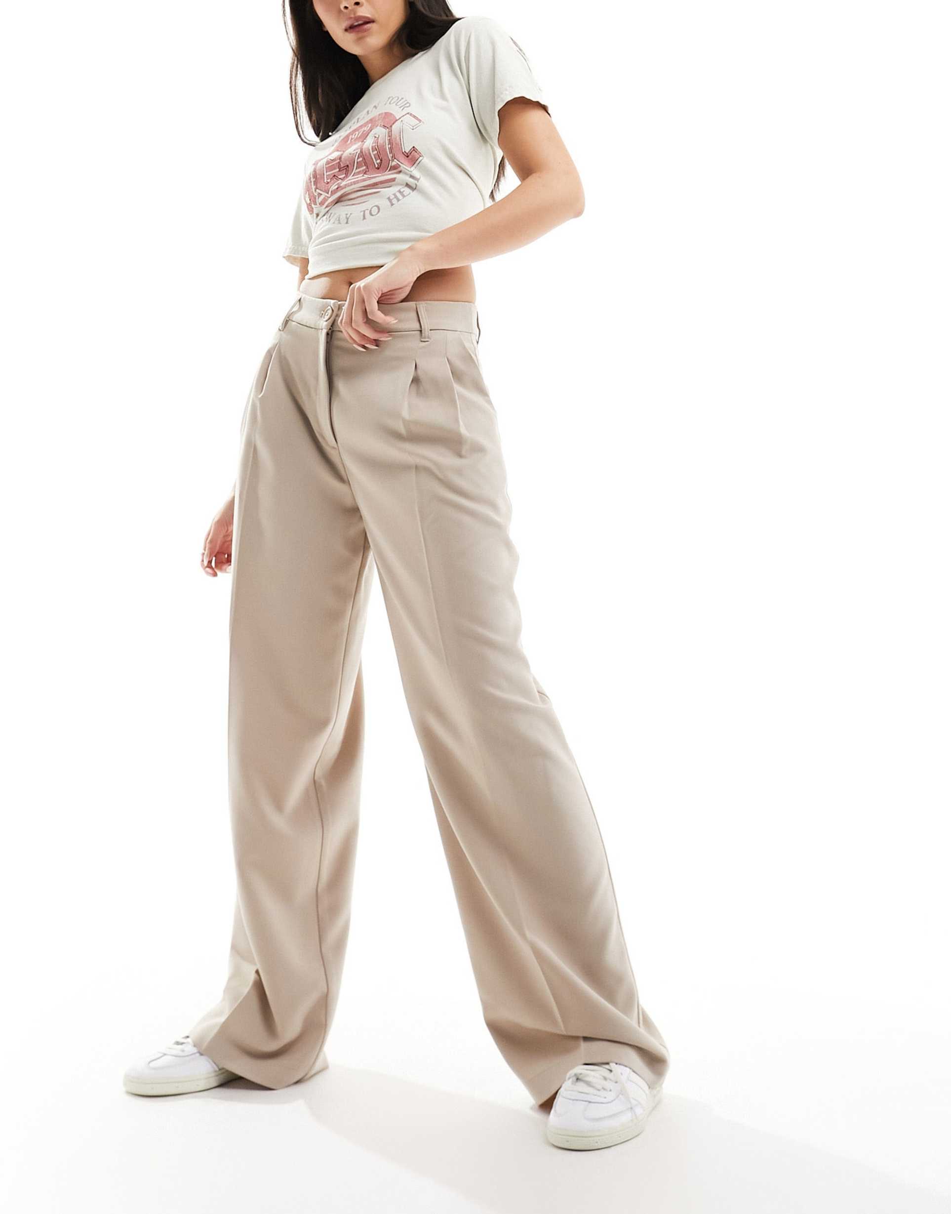 MONKI HIGH WAIST WIDE LEG TAILORED PANTS IN BEIGE