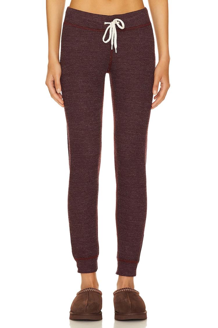 Cozy meets chic in these burgundy thermal joggers, crafted for downtime and easy days. The soft, stretchable blend of rayon, polyester and spandex moves with you, while a warm thermal finish keeps out the chill. A tapered silhouette with ribbed cuffs and an elasticized drawstring waistband delivers a snug, flattering fit from waist to ankle. Wear them with oversized knits, a slouchy tee, or a cropped hoodie for a relaxed weekend look. Versatile for lounging at home or running errands, these joggers bring understated warmth and modern simplicity to your casual wardrobe.