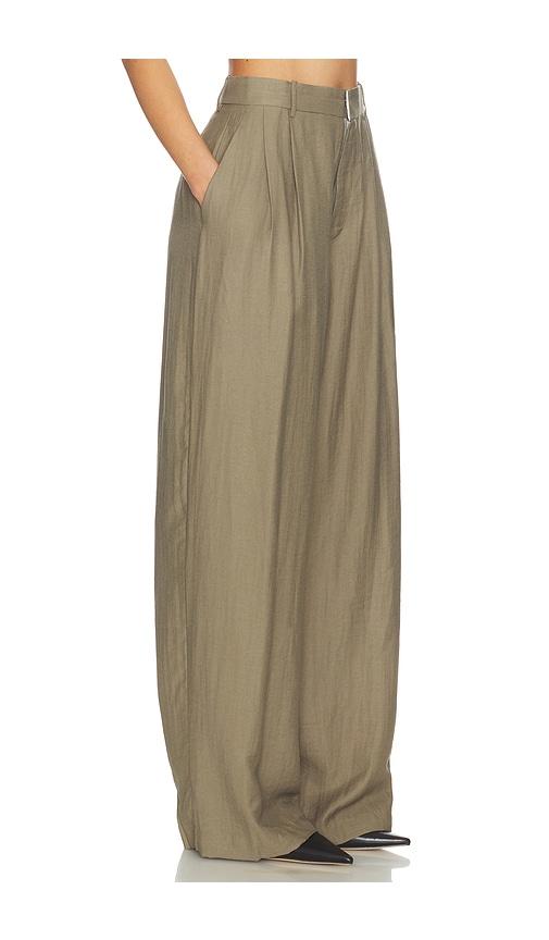 MOTHER OF ALL HEDI MID WAIST TAILORED LINEN PANT IN OLIVE.