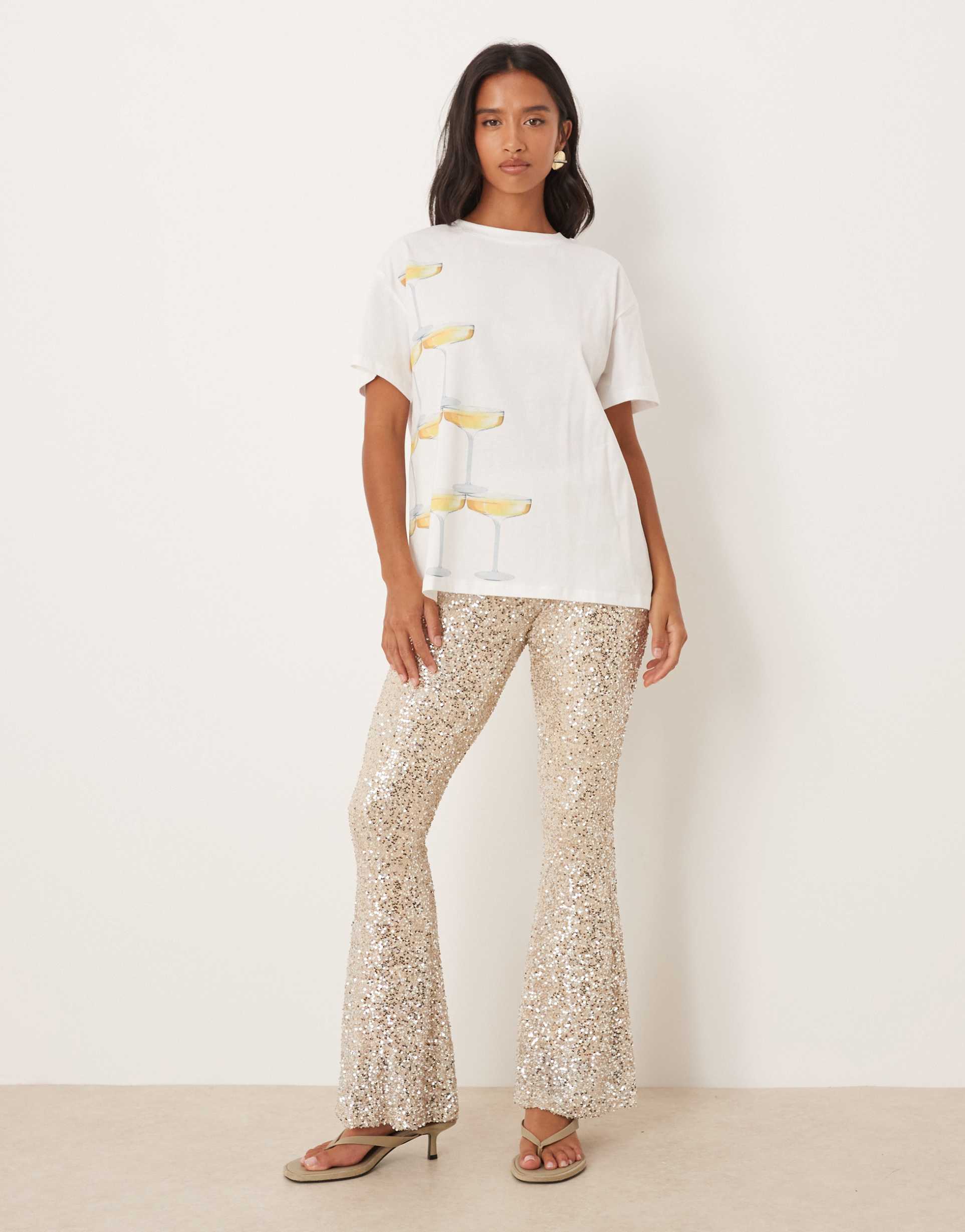 sparkling flared pants for night out