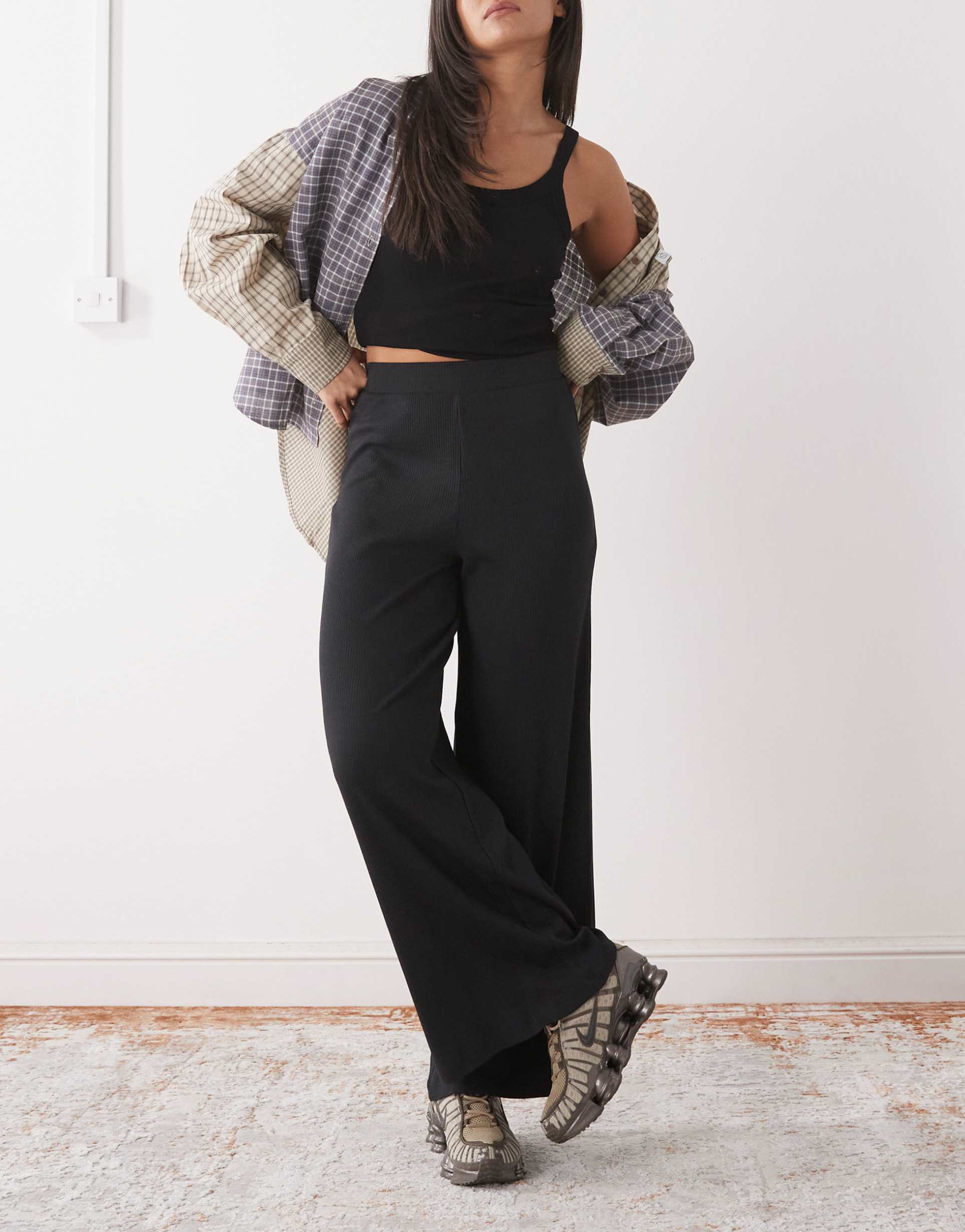 NOISY MAY RIBBED WIDE LEG PANTS IN BLACK