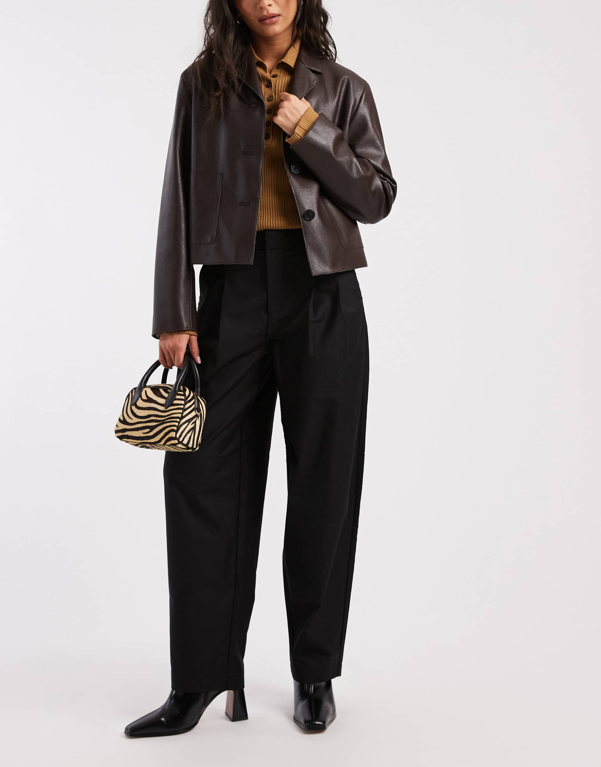 OBJECT PLEAT FRONT BARREL LEG DETAIL PANTS IN BLACK