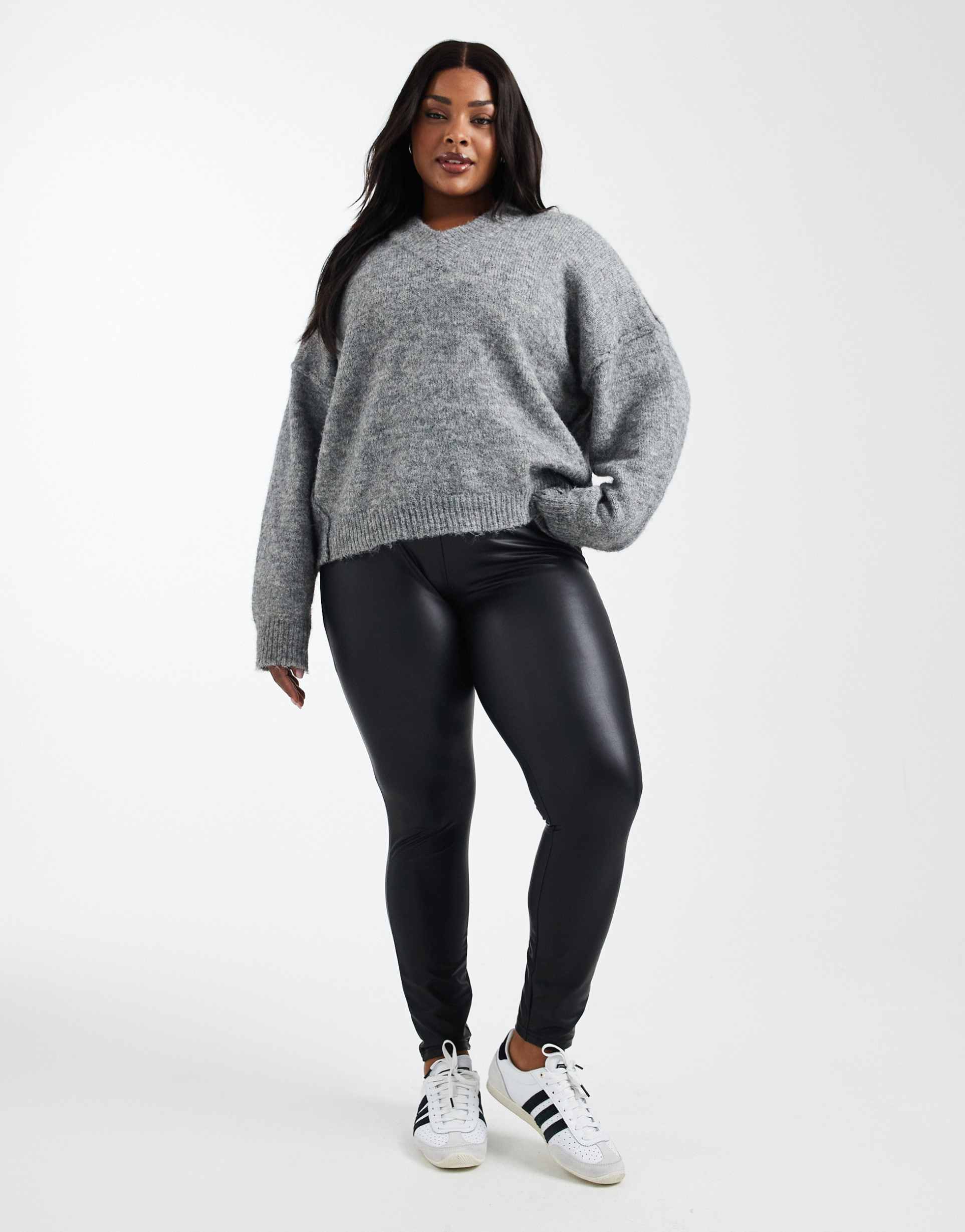 Make a sleek statement with these Only Curve coated leggings in black, designed for a high-rise, bodycon fit that sculpts your silhouette. Crafted from a smooth, stretchable fabric blend featuring a shiny polyurethane coating, they offer both style and comfort. The elasticated waistband ensures a secure yet flexible fit, while the ankle-length hemline makes them versatile for pairing with sneakers or heels. Perfect for casual streetwear, athleisure, or everyday wear, these leggings effortlessly combine modern edge with practical comfort, making them a must-have staple in your wardrobe.