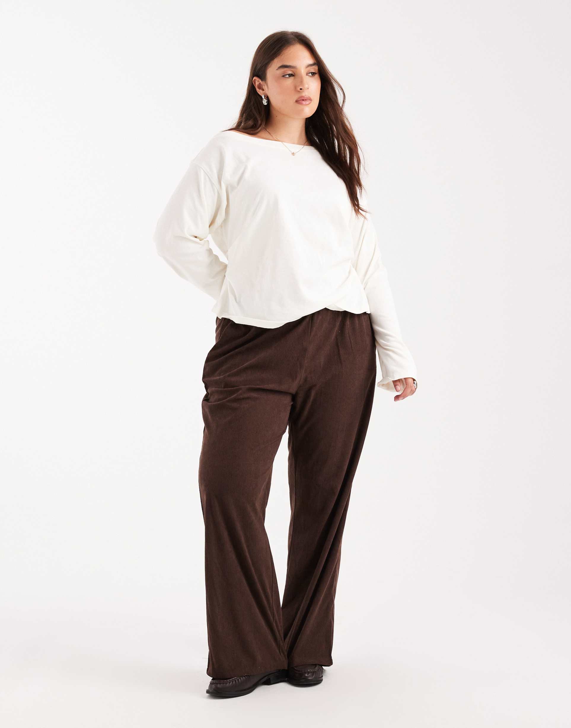 ONLY CURVE WIDE LEG PULL ON CORD PANTS IN BROWN