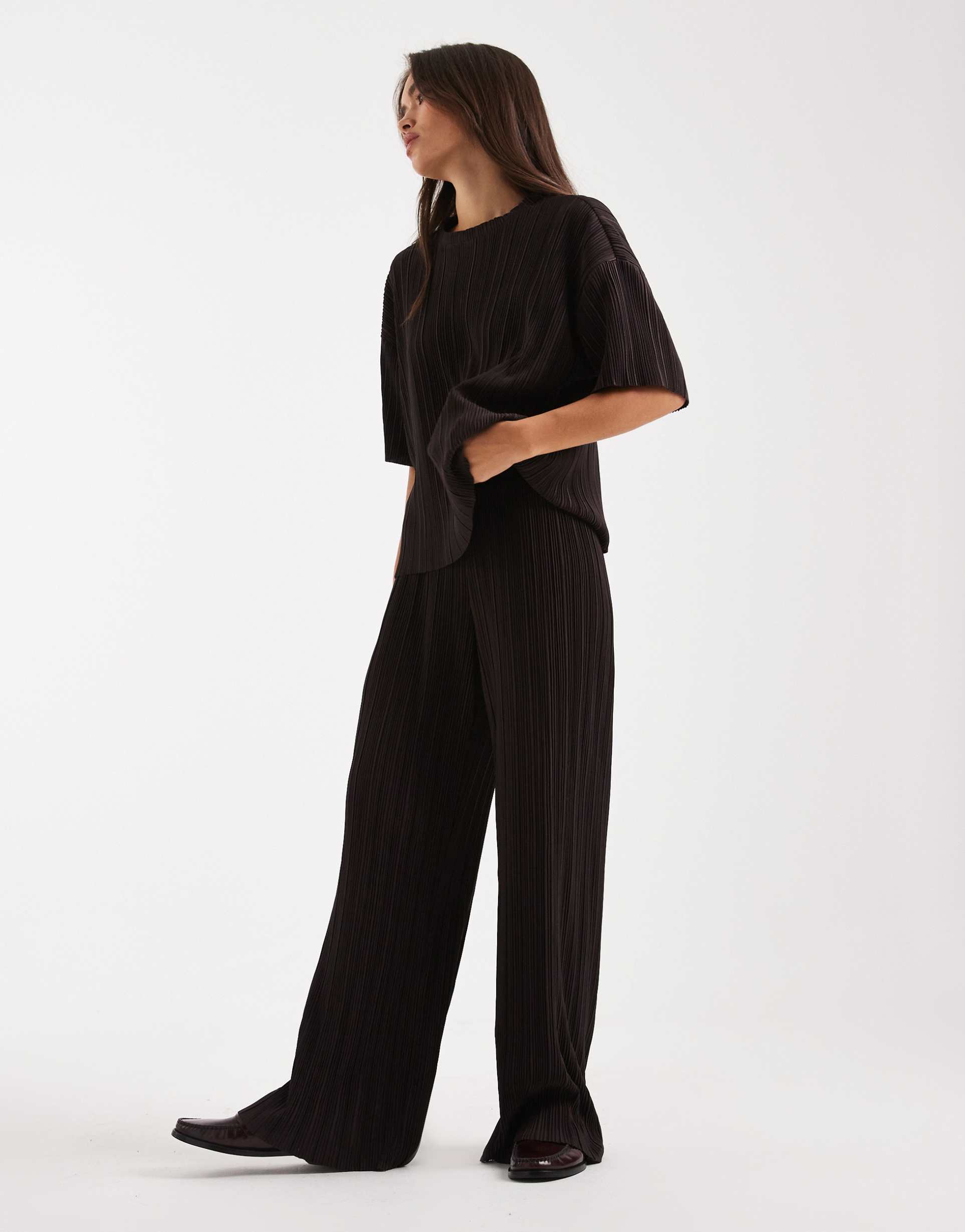 ONLY PLISSE WIDE LEG PANTS IN CHOCOLATE BROWN - PART OF A SET