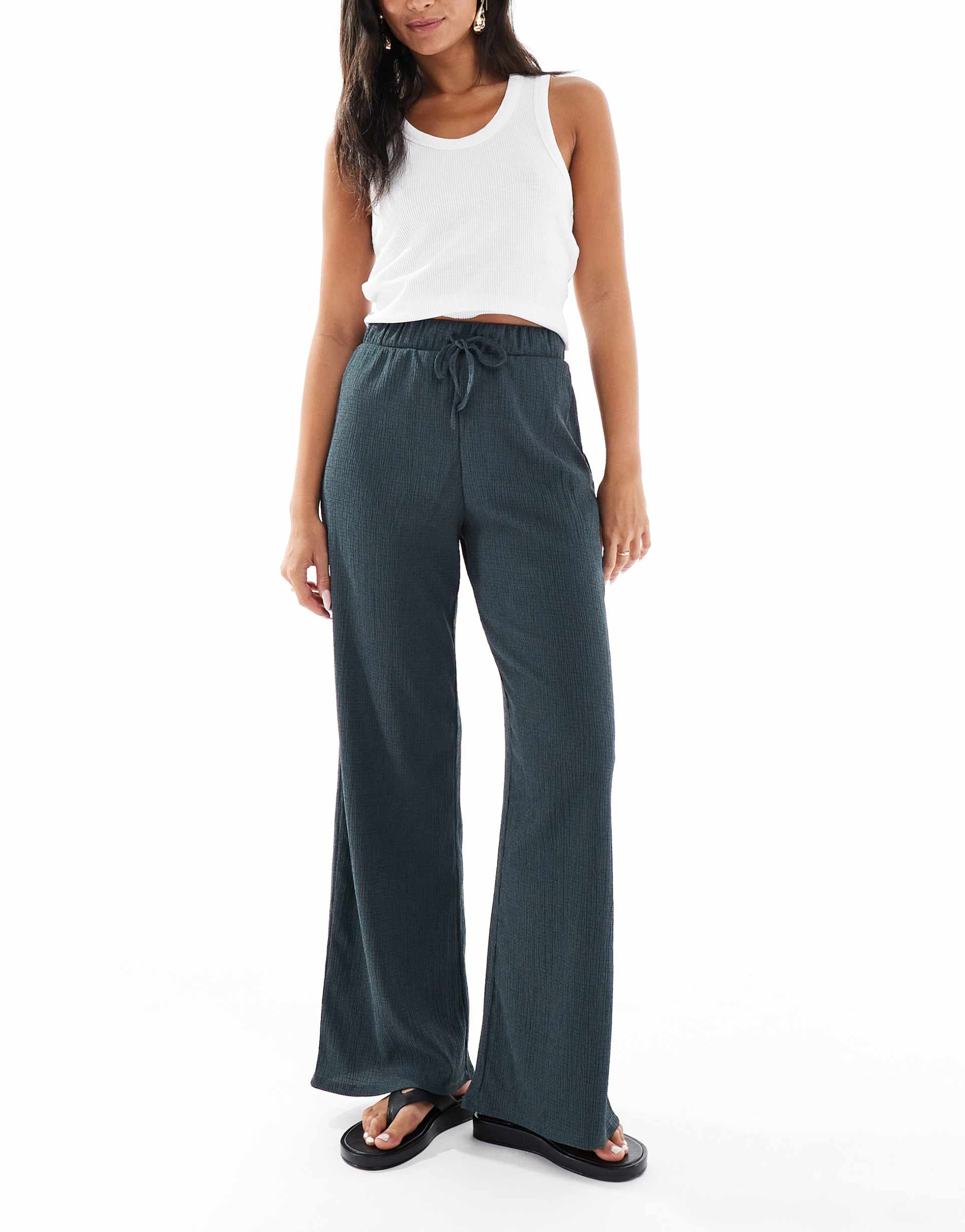 ONLY TEXTURED TIE WAIST WIDE LEG PANTS IN GRAY