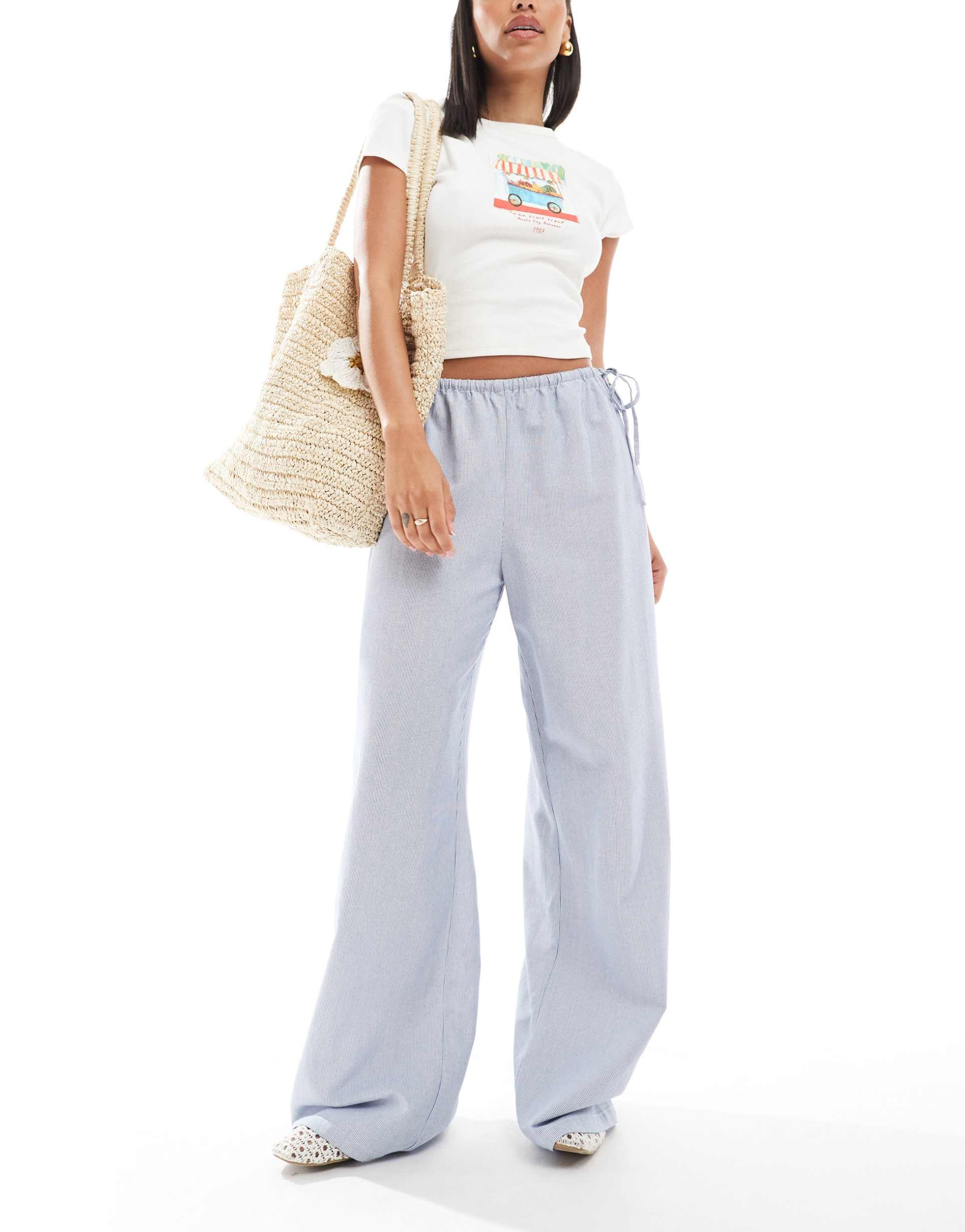 ONLY WIDE LEG TIE DETAIL PANTS IN BLUE STRIPES