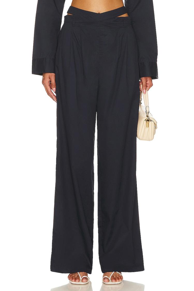 Elevate your everyday with this Jenna Pant in deep navy crepe jersey. A high-waist silhouette with crisscross waist straps creates a sculpted, modern line, while a hidden side zipper keeps the look sleek. The wide-leg, full-length cut drapes beautifully over the body, offering easy movement and refined drama. Crafted from a polyester blend, the fabric lends a soft, fluid fall and easy care. Practical side pockets add everyday utility, making it ideal for everything from office-to-dinner to weekend getaways. Dress it up with a blouse, or pair with a knotted tee for casual chic.