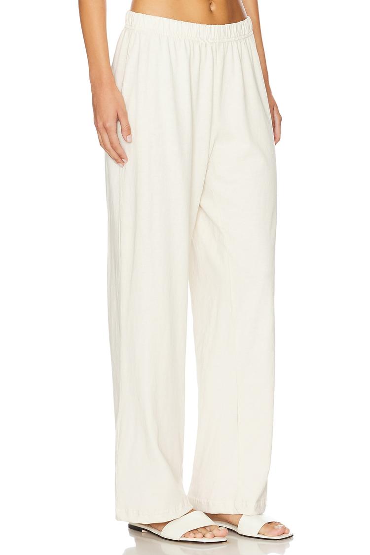 Effortless, breathable off-white Supima cotton pants anchor a relaxed daytime wardrobe. These pull-on wide-leg pants in creamy jersey weave move with you, from morning errands to coffee dates. A soft elastic waistband and generous drape create a laid-back silhouette that skim the hips and fall to a full length that elongates the leg. Crafted in 100% cotton for all-day comfort, they pair with tees, knit tanks, or a silky blouse for a casual-cool look. Ideal for travel, weekends, and easy-working days alike.