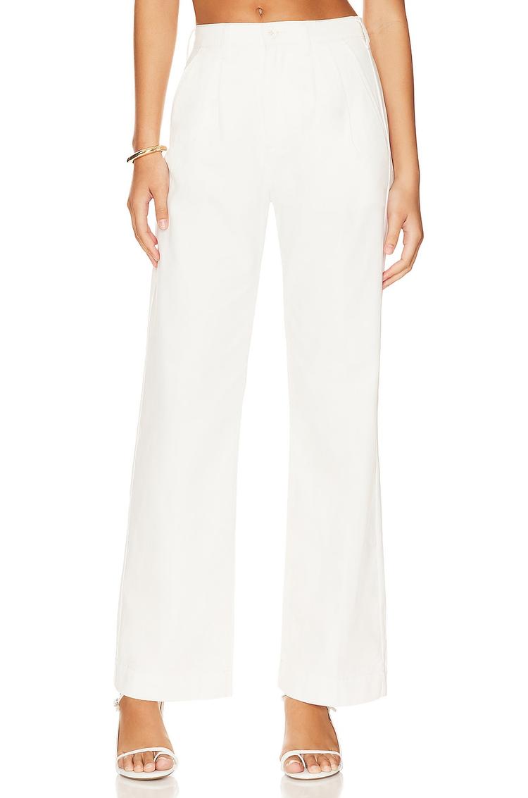 Elevate your wardrobe with a crisp, versatile essential: the Ellery Pant in white. Crafted in cotton-twill with soft pleats, these wide-leg trousers glide from a high-rise waist into a sculpted yet relaxed silhouette. The front zip fly with a neat button closure keeps the look streamlined, while side slant and back welt pockets add practical polish. A full-length hem creates a clean, confident line that flatters any figure and pairs effortlessly with everything from silk blouses to chunky knits. Dress them up for the office or down for weekends—timeless, modern and endlessly wearable.