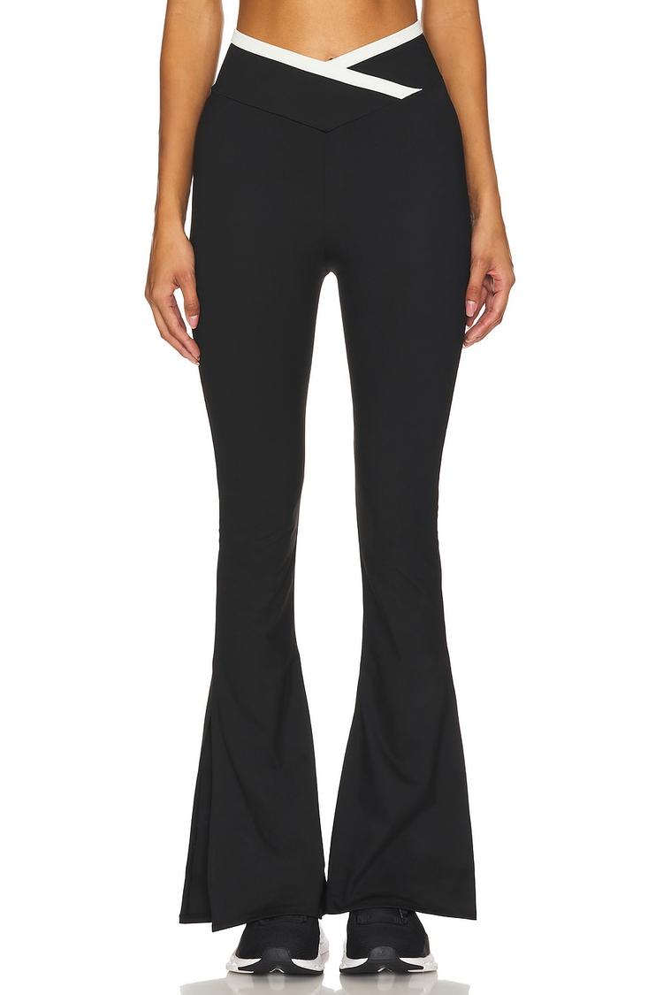 Elevate your everyday silhouette with the Port de Bras Vera Legging. Crafted in a midweight nylon-elastane jersey, this pull-on style hugs every curve with superior stretch and spring-back resilience. A dramatic flare begins at the knee, sweeping into a full-length hem that commands attention, while a crisp white cross-strap waistband adds graphic contrast to an all-black finish. The split-cuff hem injects modern edge, making these leggings perfect for studio sessions that flow into street-ready looks. Versatile, comfortable, and intentionally chic, they move with you from workout to weather with effortless style.