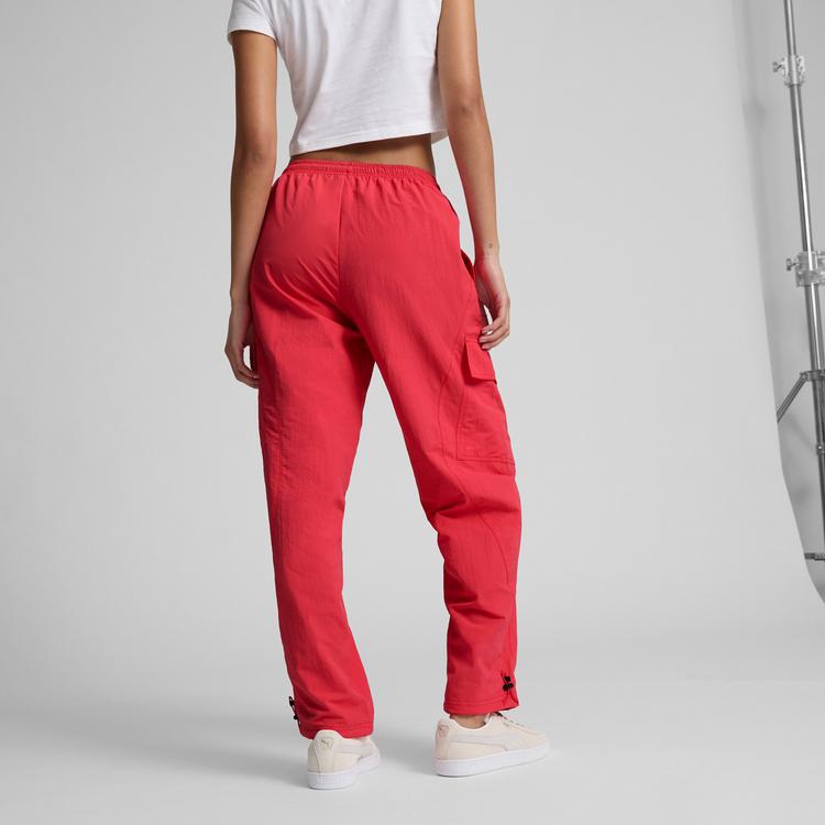 PUMA CLASSICS TURN IT UP WOMEN'S CARGO PANTS IN RED, SIZE XXS