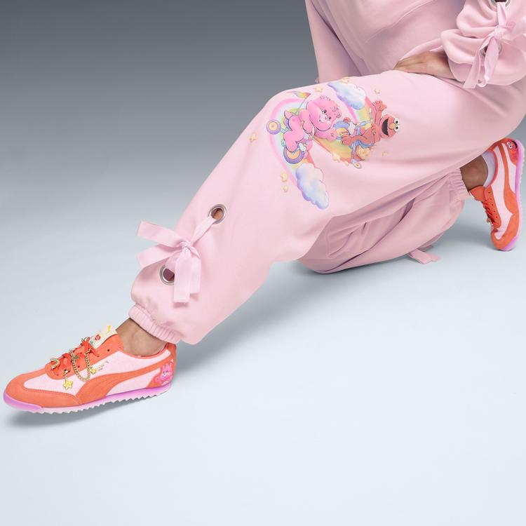 PUMA X CARE BEARS X SESAME STREET WOMEN'S RELAXED FLEECE PANTS IN PINK, SIZE L