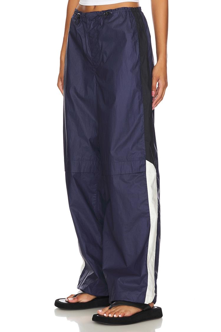 Elevate your everyday with these navy Rag & Bone Monica Pants. A relaxed Palazzo silhouette in breathable cotton delivers effortless movement and a modern, sports‑luxe vibe. The zip fly with a practical drawstring waist ensures a secure, customizable fit, while three pockets add functional polish. A bold white side stripe brings a sharp, contemporary contrast, enhancing the leg’s clean line from waist to hem. Dress them up with a sleek top and sandals or keep it casual with a tee and sneakers for travel, weekends, or city strolls. A versatile staple that transitions from day to night with ease.