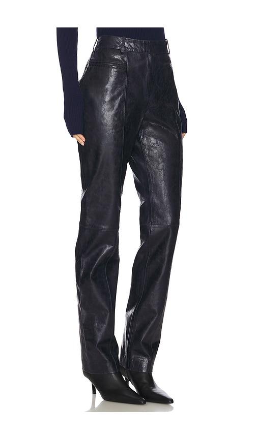 REMAIN SLIM LEATHER SUITING PANTS IN NAVY.