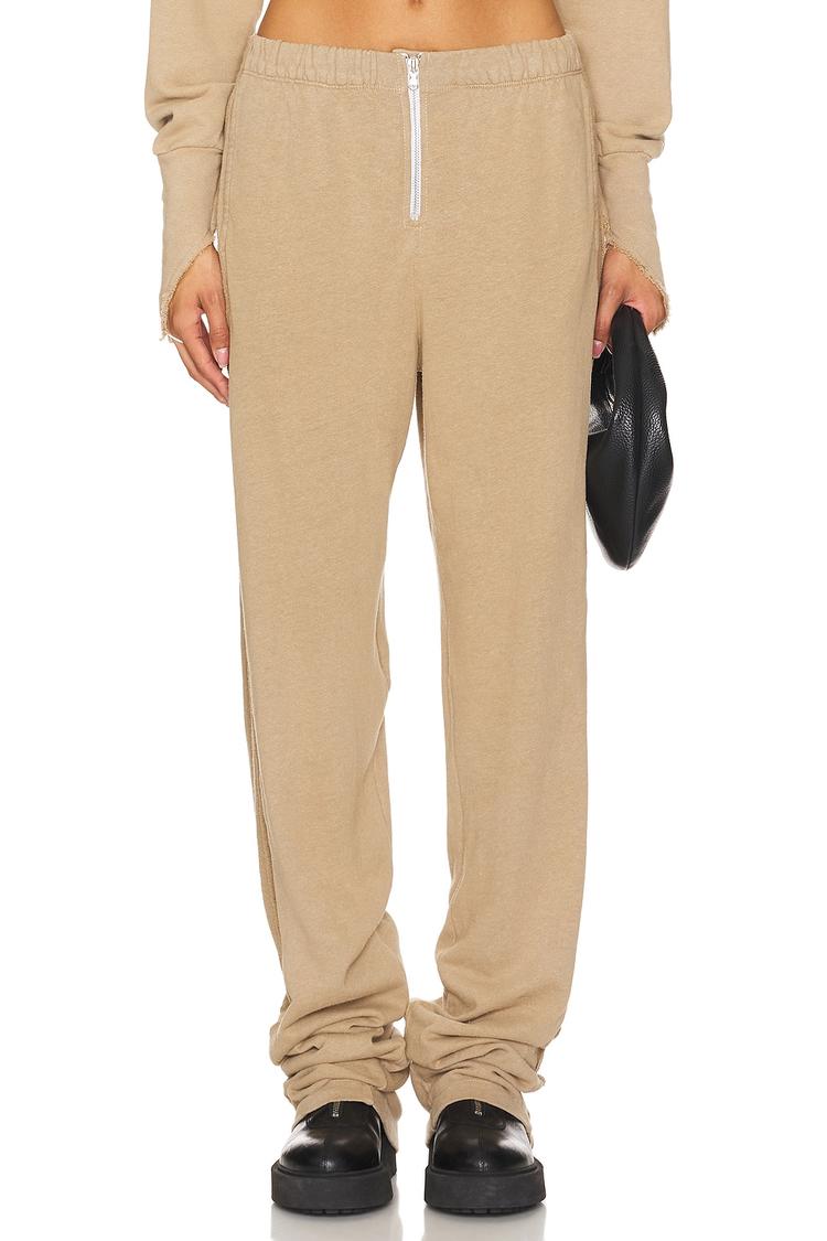 Effortless comfort meets refined streetwear in Sami Miro Vintage Porterhouse Sweatpant. Crafted from a soft, breathable hemp blend (55% hemp, 45% organic cotton), this beige jogger drapes relaxed through the hip and thigh before tapering to a practical cuff. An elastic waistband with a front zip fly keeps the fit secure without fuss, while side seam pockets add everyday practicality. The two-tone side stripe detail adds a subtle sculpted edge to an all-day staple that pairs just as easily with a knit and sneakers for errands as with a hoodie for evenings in. A sustainable, versatile essential for modern casual wear.