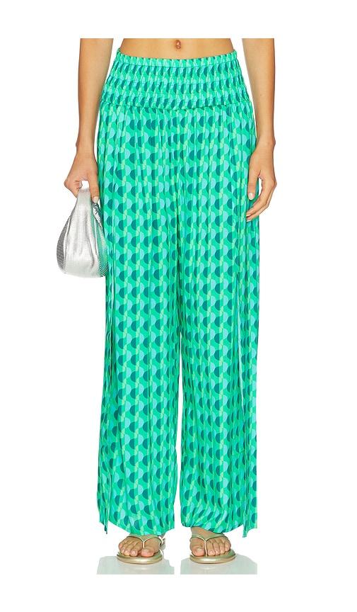 SEAFOLLY SHIRRED WAIST WRAP PANT IN GREEN.