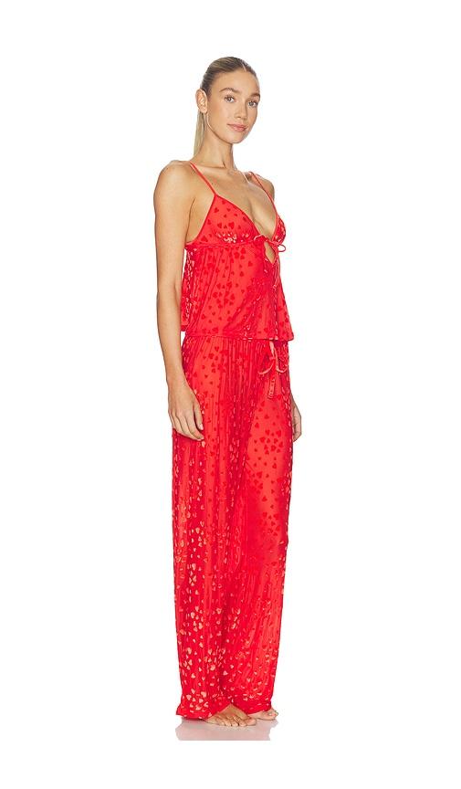 SKIMS SHEER VELVET BURNOUT CAMI & PANT SET IN RED.