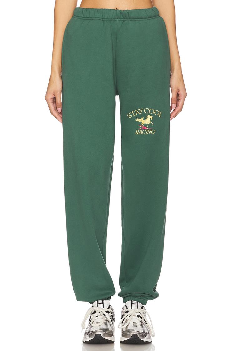 Redefine casual comfort with Stay Cool Racing Sweatpant in deep forest green. Crafted from a soft cotton–polyester blend with a cozy fleece lining, these pull-on joggers balance warmth and ease. The silhouette is relaxed through the hip and thigh, tapering into a cuffed ankle for an on-trend jogger look. An elastic waistband and side pockets emphasize everyday practicality, while the subtle logo at the front adds a sporty, contemporary edge. Ideal for lounging at home, layered for workouts, or running quick errands, these pants marry comfort with a clean, athletic vibe that fits seamlessly into weekend outfits and travel wardrobes.