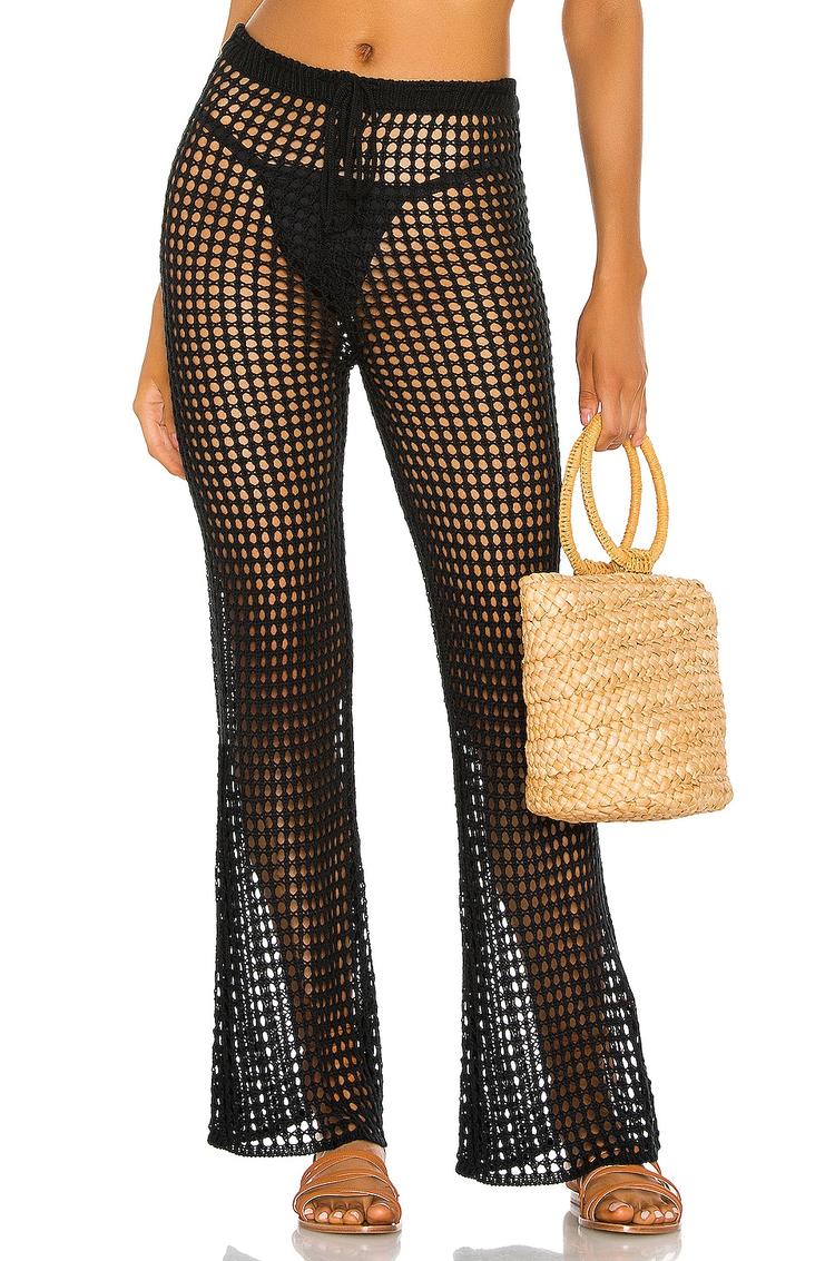 Experience resort-ready ease with the Elektra Crochet Pant from Superdown. This bold, open-knit black pant drapes in a relaxed palazzo silhouette, catching the breeze with every step. An adjustable drawstring waist lets you tailor the fit, while breathable acrylic mesh delivers lightweight comfort in warm days. Pair with a bikini top for beach glamour, or a silky cami for late-night dinners—the versatile, full-length pant transitions from sun-soaked days to chic evenings. Effortless, on-trend boho-chic styling that adds texture and attitude to any outfit.