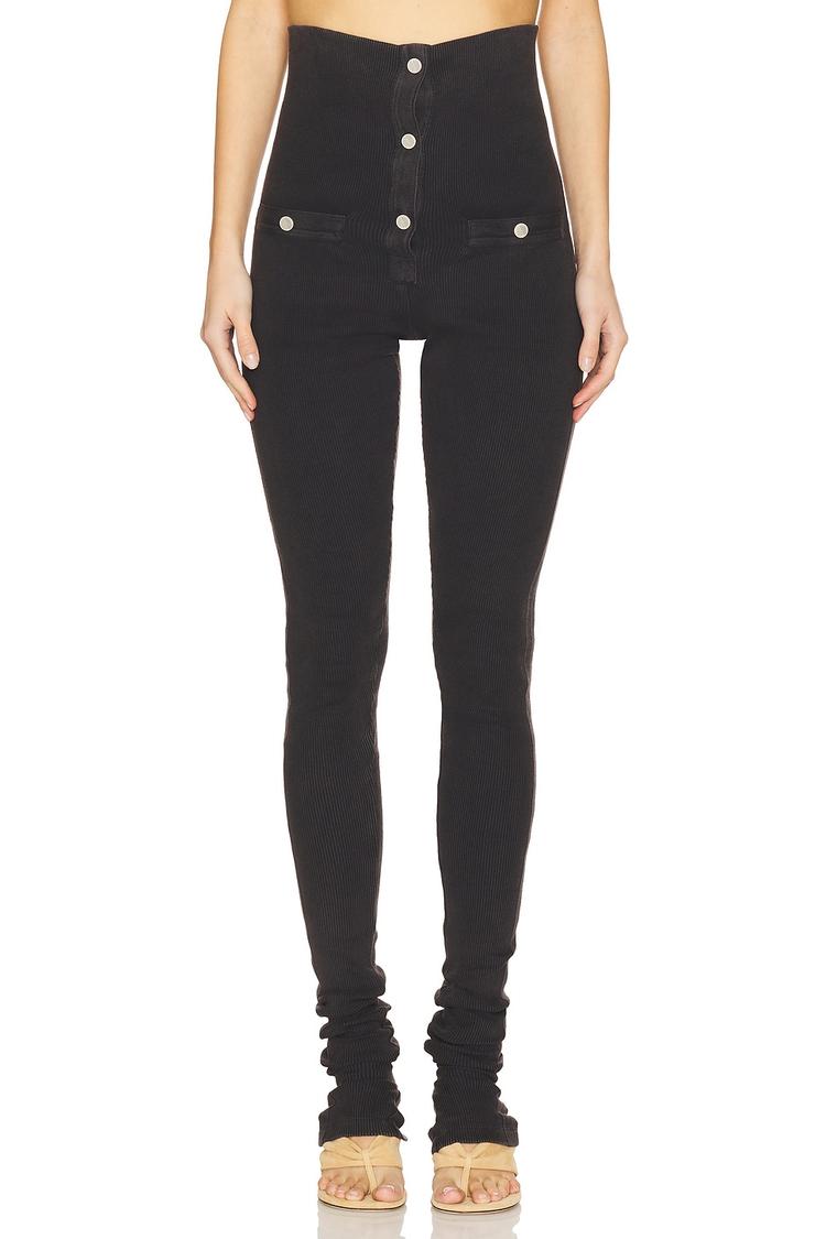 Effortless downtown polish meets laid-back comfort in The Attico's Long Pant. Crafted in heavyweight ribbed cotton with a touch of elastane for a sculpted, slimming fit, this ankle-length pant hugs from knee to ankle in a true slim-fit silhouette. A flat-front waistband streams clean lines while a snap fly and front snap pockets add utilitarian edge. Solid black, versatile enough to dress up with a silky blouse or anchor a chunky knit and weekend sneakers. The footed design creates a streamlined look that moves from day to night with confident ease.