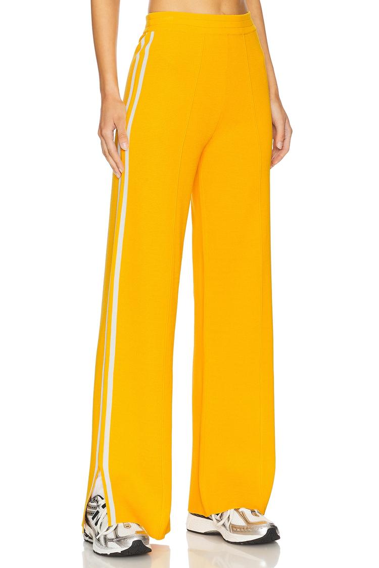 bright yellow wide-leg pants with side stripes for a sporty chic look