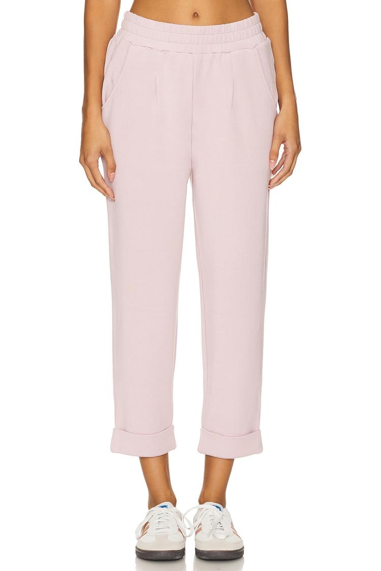 Soft pink Rolled Cuff Sweatpant from Varley anchors everyday looks with effortless comfort. The midweight jersey blends viscose, polyester and a touch of elastane for a breathable, shape‑retaining feel. An elastic drawstring waist and side pockets offer functional ease, while a tapered leg coolly narrows from knee to the rolled cuff, creating a casual yet polished silhouette. Ideal for lounging, running errands, or low‑intensity workouts, these joggers pair beautifully with a cropped tee or oversized sweatshirt for a modern, minimalist athleisure vibe. Your versatile, cozy staple for everyday styling.