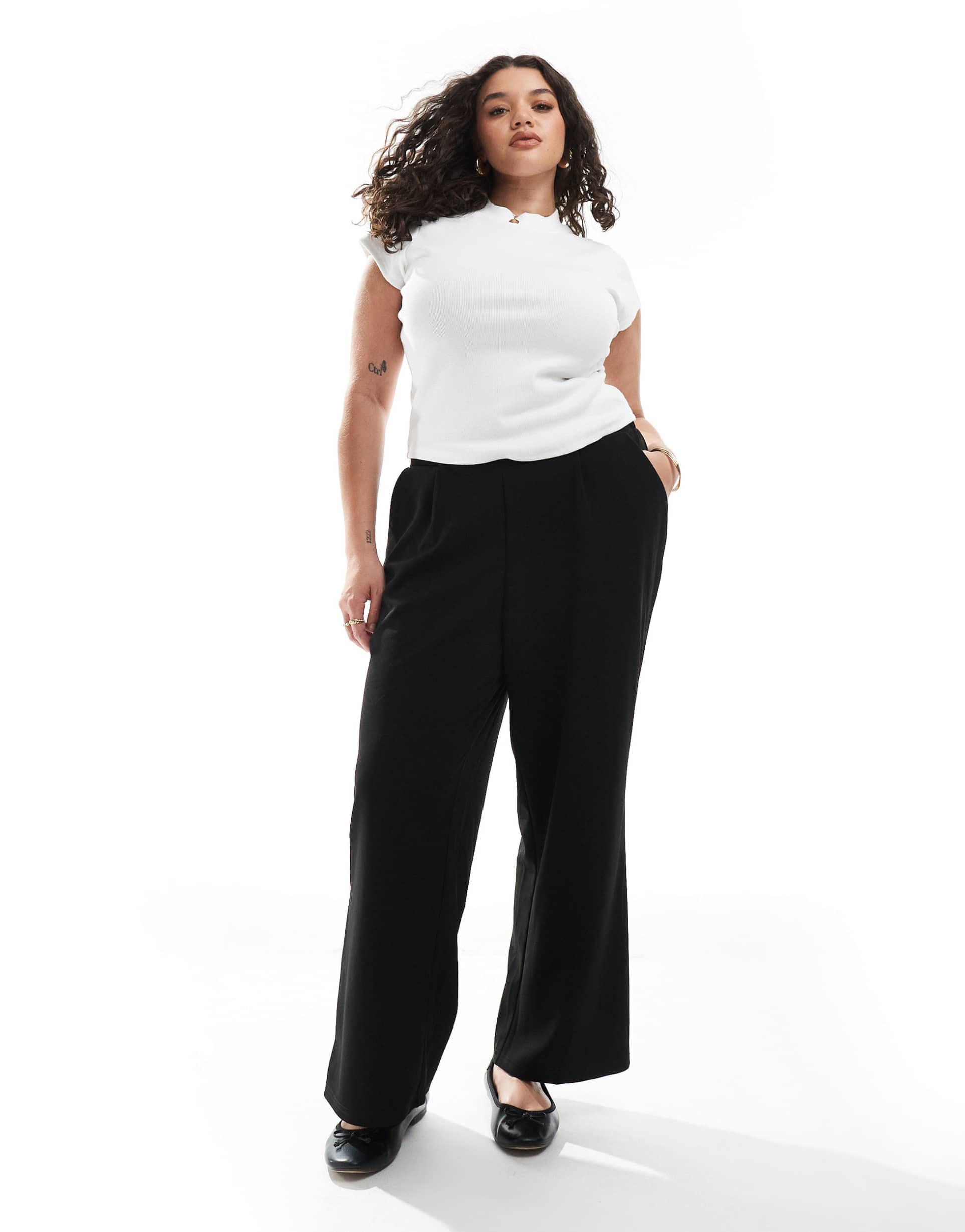 VERO MODA CURVE JERSEY CREPE CROPPED PANTS IN BLACK