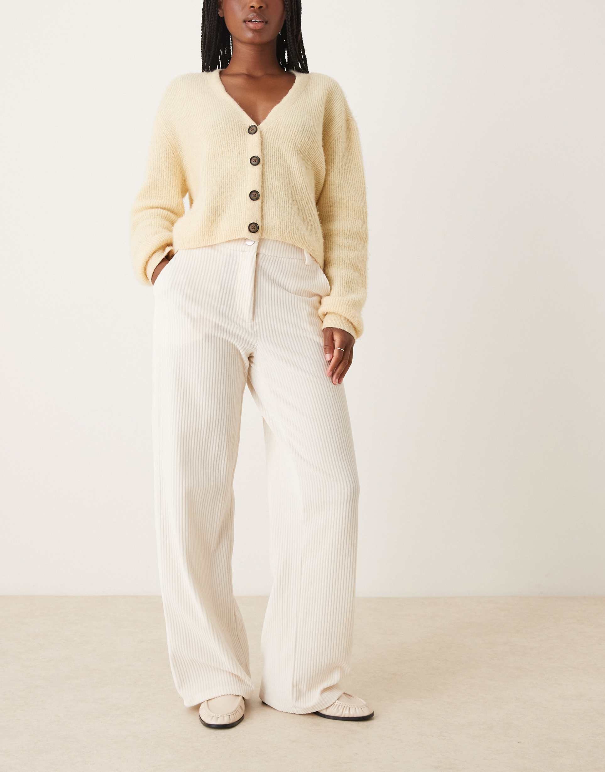 VILA HIGH RISE CORDUROY PANTS IN CREAM