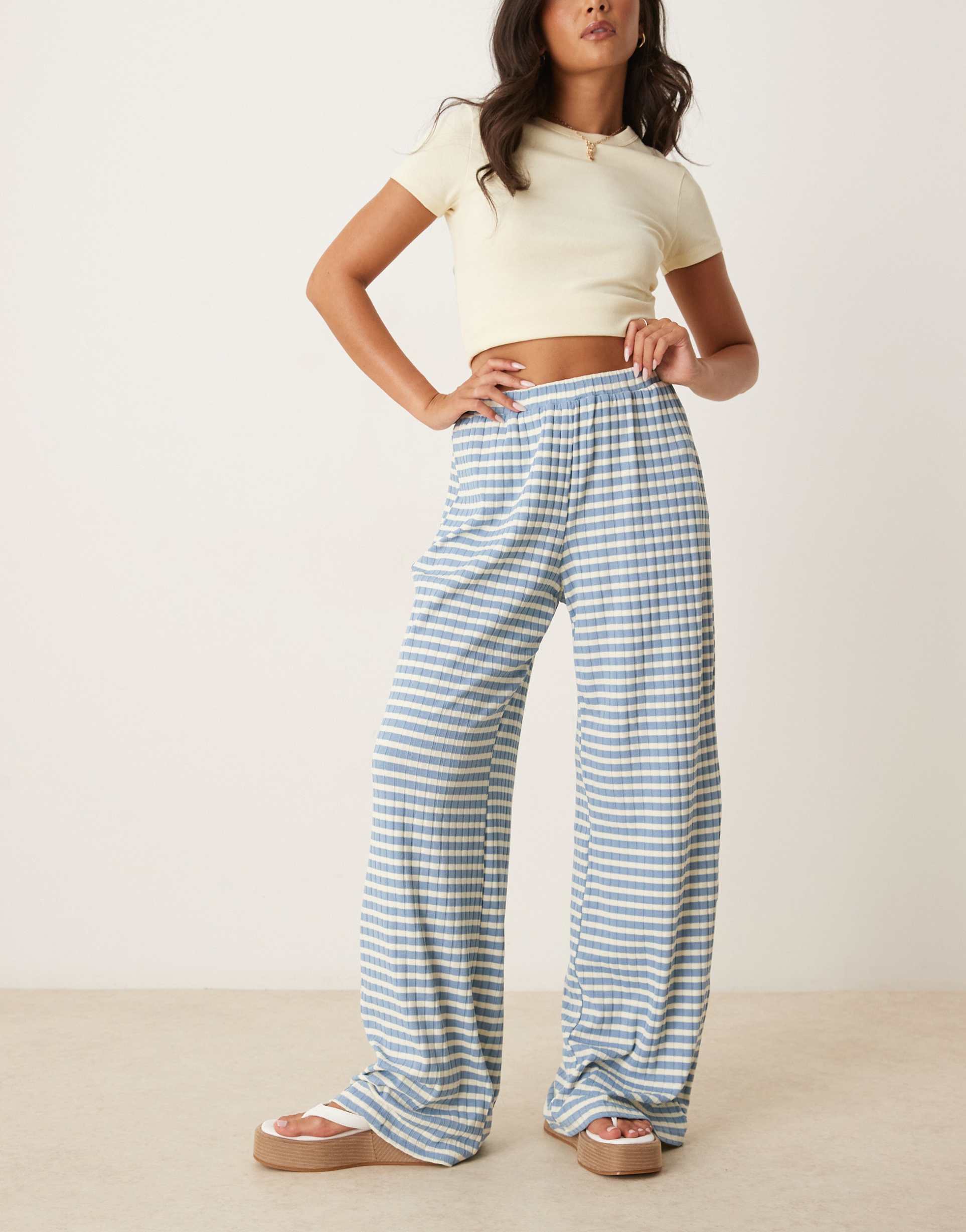 VRG GRL FARA STRIPED WIDE LEG SLINKY PANTS IN BLUE