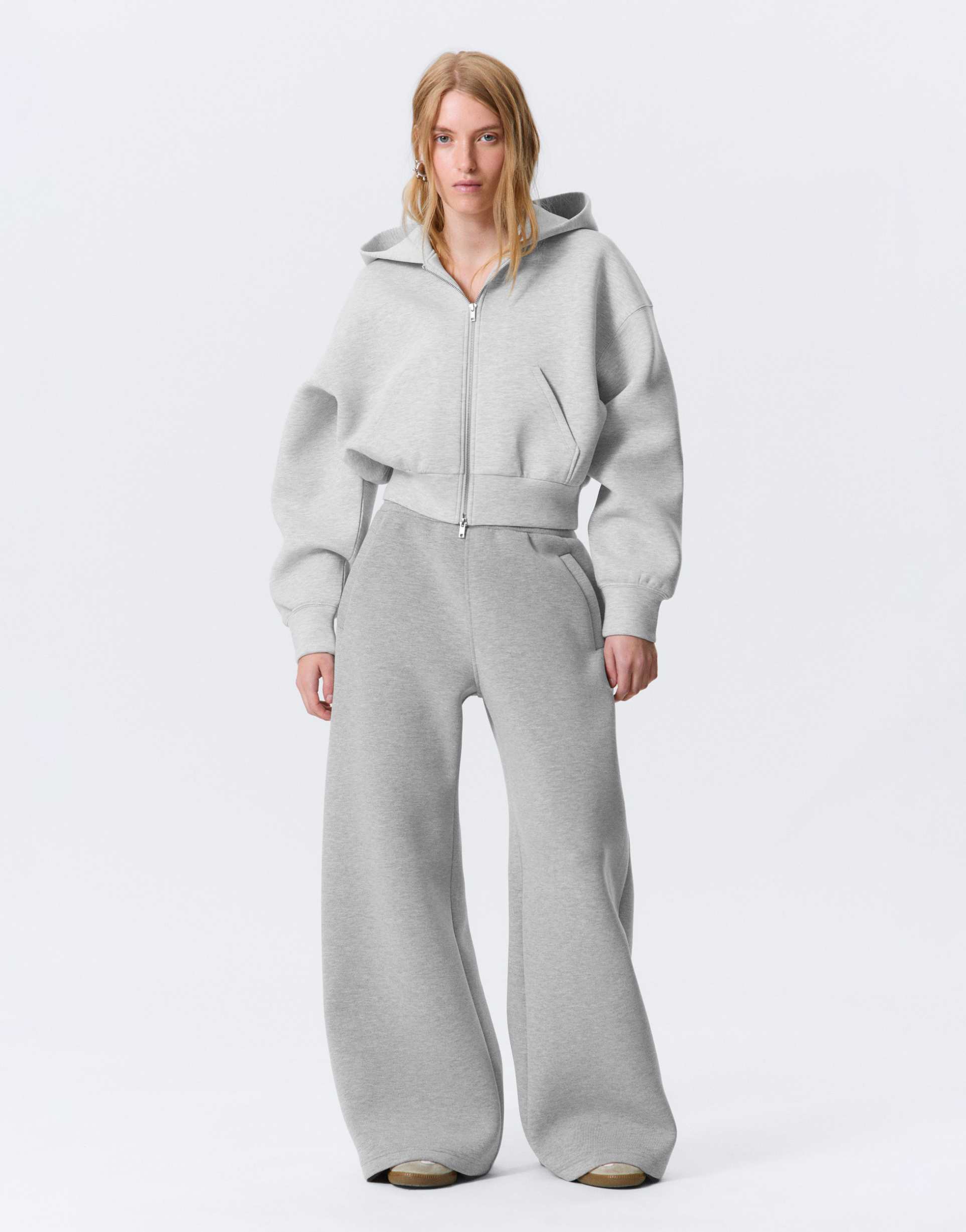 WEEKDAY WIDE LEG SWEATPANTS IN HEATHER GRAY SCUBA-STYLE FABRIC