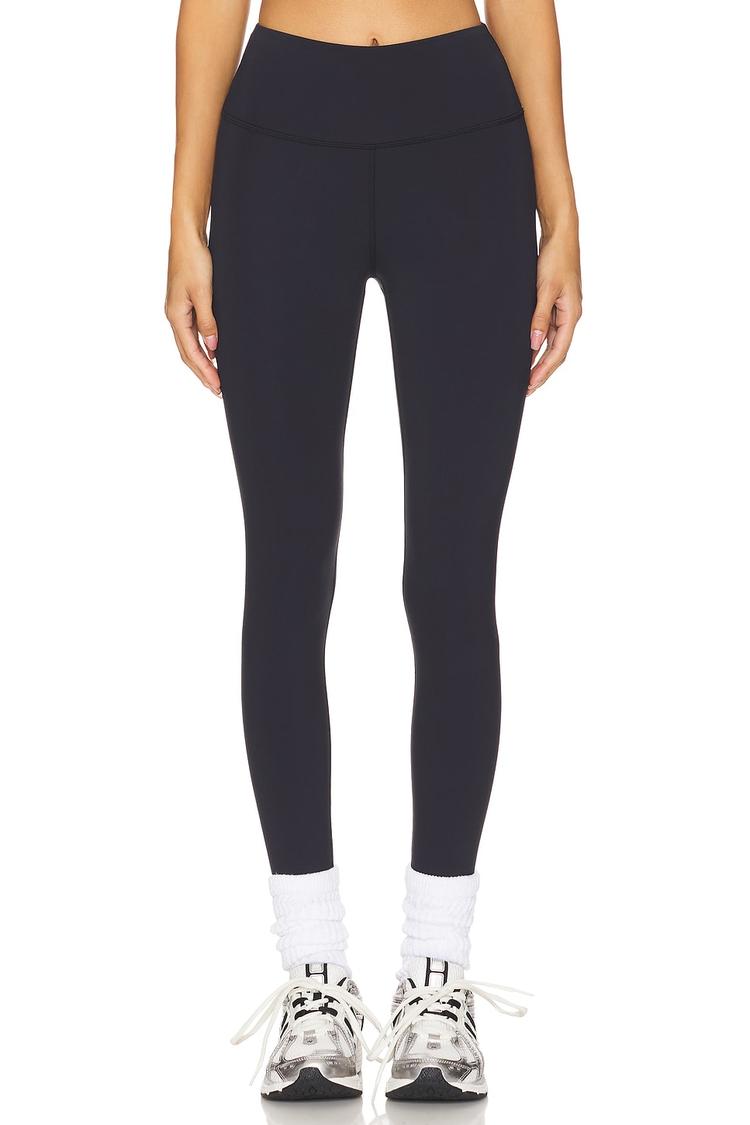 Embrace cold-weather workouts with the Wellbeing + Beingwell WarmWell Stirrup Legging. In a deep navy, this slim-fit pair hugs from hip to ankle with an elasticized waistband for a sleek, bounce-free silhouette. The brushed interior shelters you in warmth, while the 77% recycled polyester and elastane blend delivers 4-way stretch and moisture-wicking comfort for everything from workouts to après-sport layering. The stirrup cuffs add a modern, athletic edge, pairing perfectly with sneakers or winter boots. A versatile essential designed for performance, warmth, and everyday ease.