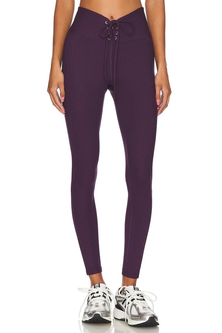Introducing Year Of Ours Ribbed Football Legging in a rich deep purple, a sleek staple built for everyday motion. The ribbed jersey fabric hugs the body with a comfortable, stretchable fit, while the high-rise waistband with a front lace-up closure adds a sporty, lived-in edge. Designed as an ankle-length silhouette, these leggings pair perfectly with oversized knits, cropped jackets, or your go-to sneakers for an instant athleisure look. From weekend errands to light workouts, this versatile piece layers with ease and keeps you feeling supported and ready for anything. A minimalist chic essential with modern detail.