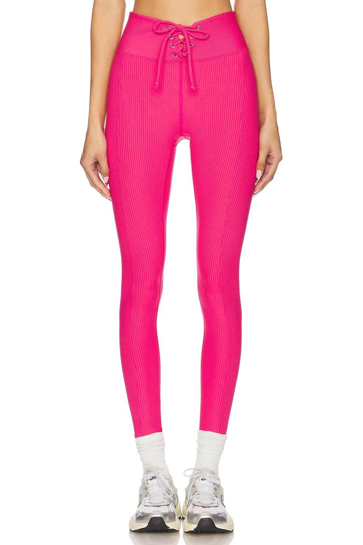 Power through every reps and rest days in a high-impact, eye-catching legging. This ribbed jersey piece delivers a sculpting, second-skin feel with a pull-on elastic waistband and a touch of edge from a front lace-up detail. The vibrant pink hue reads bold and confident, while the full-length silhouette and ribbed texture promise flattering lines from hip to toe. Versatile enough for gym sessions, studio classes, or elevated streetwear, it pairs effortlessly with oversized hoodies, sneakers, or a cropped top for a sporty-chic aesthetic that stays put as you move.