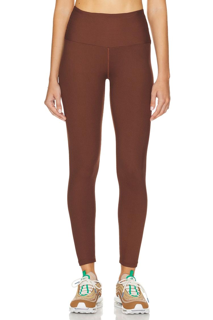 Elevate your everyday with Year Of Ours Ribbed Leggings in a rich chocolate-brown nylon rib knit. The high-rise, pull-on silhouette hugs the body in a sleek, second-skin fit from waist to ankle, delivering versatile comfort with a minimalist edge. The ribbed texture adds subtle depth to a classic wardrobe staple, ideal for training sessions, casual coffee runs, or city strolls. Pair with a cropped top for a sporty look, or layer under an oversized sweater for cozy, city-ready style. A versatile, performance-minded piece that pairs effortlessly with everything in your closet.