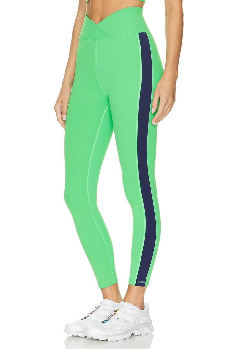 Step into bold, active style with Year Of Ours Sport 7/8s Track Legging. The neon green body makes a fashion-forward statement, brilliantly offset by a navy side stripe for a dynamic, color-block look. Crafted from a performance blend of 82% polyester and 18% spandex, these leggings offer a high-rise, pull-on fit that hugs and supports through every bend and stride. The cropped hem sits just above the ankle for a streamlined silhouette, ideal for gym sessions, studio classes, or casual athleisure wear. Elevate your workout wardrobe with this vibrant, confidence-boosting staple.