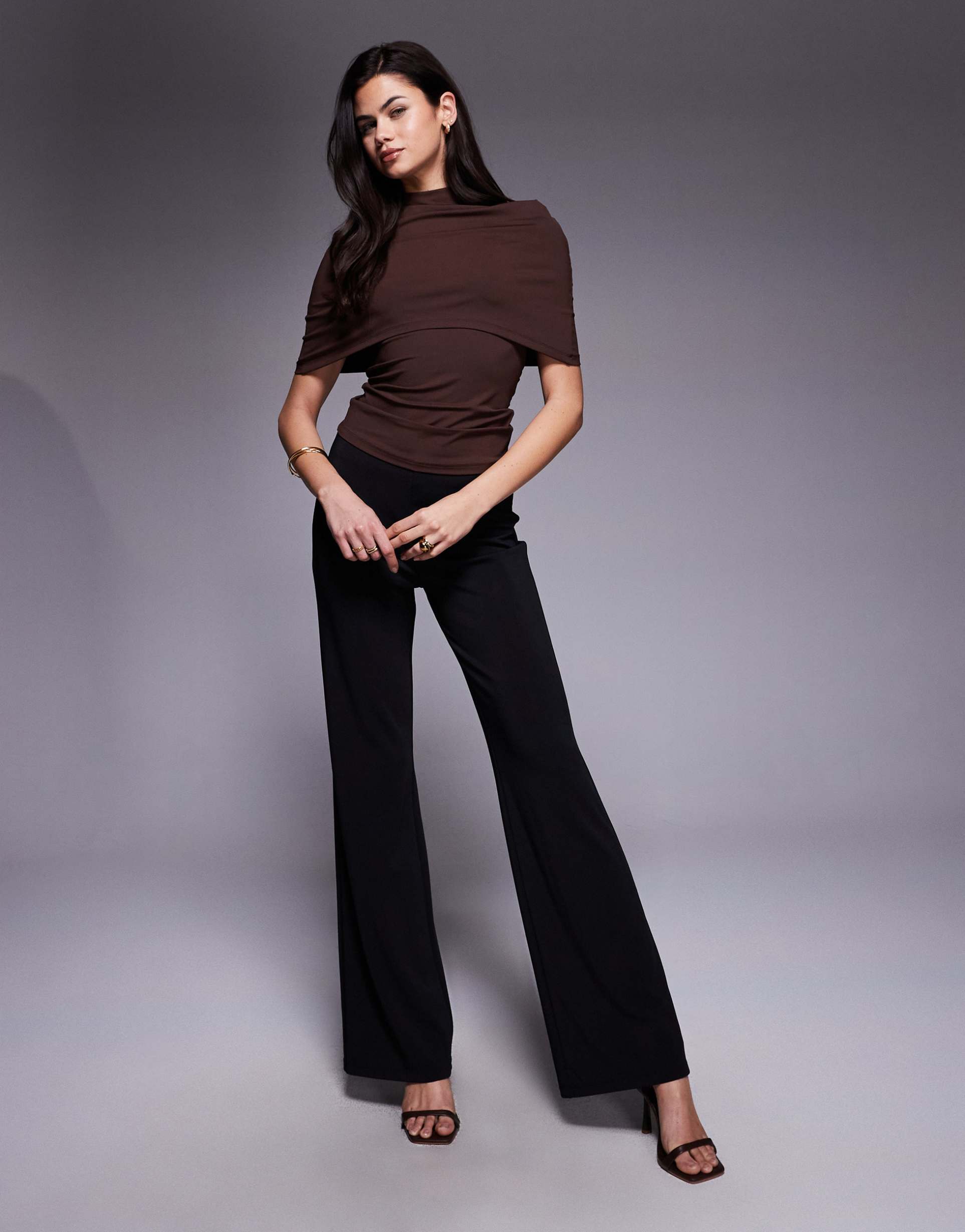 ASOS DESIGN CAPE SLEEVE OPEN TIE BROWN