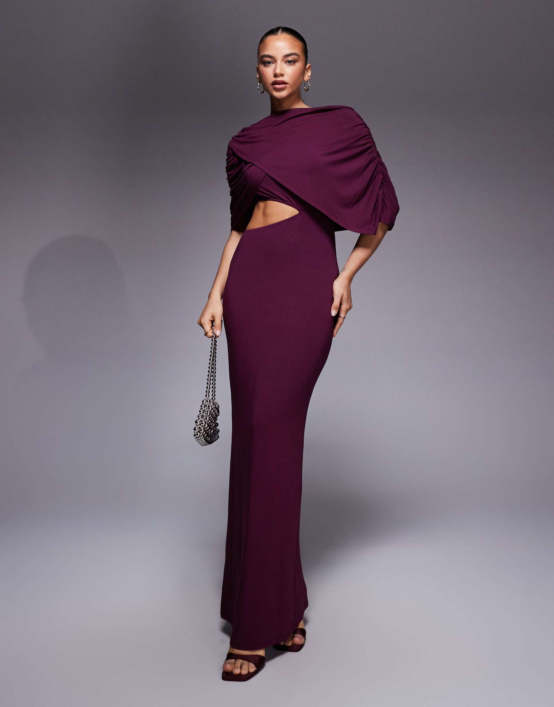ASOS DESIGN CUT-OUT ASYMMETRIC CAPE MAXI IN FIG