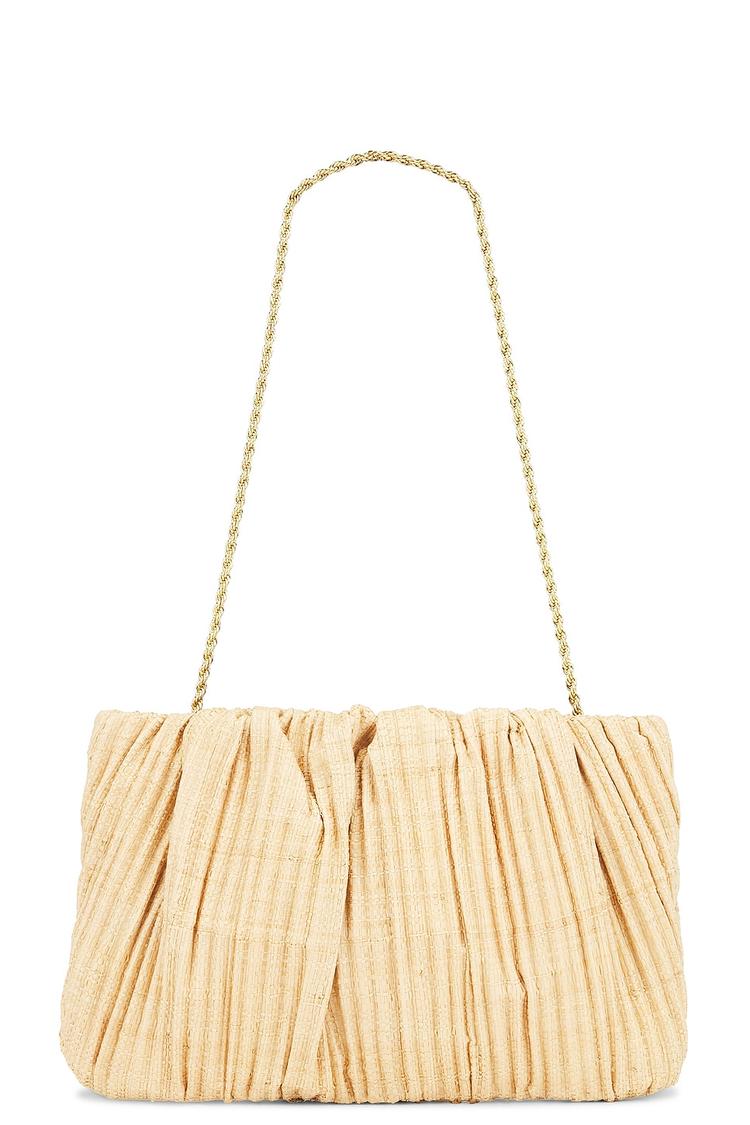 Meet the Brit Flat Pleated Pouch by Loeffler Randall—an elegant, summer-ready clutch with a natural raffia exterior and a satin lining. The softly pleated silhouette is finished with a gleaming gold-tone chain shoulder strap and a magnetic frame closure for effortless, secure openings. Inside, a discreet slip pocket keeps essentials neatly organized. Sized about 22 cm wide by 13 cm high, with a shoulder strap drop around 23 cm, it balances casual ease with refined polish. Ideal for date nights, brunch, or evening events, this compact bag adds texture and warm neutral chic to any outfit.