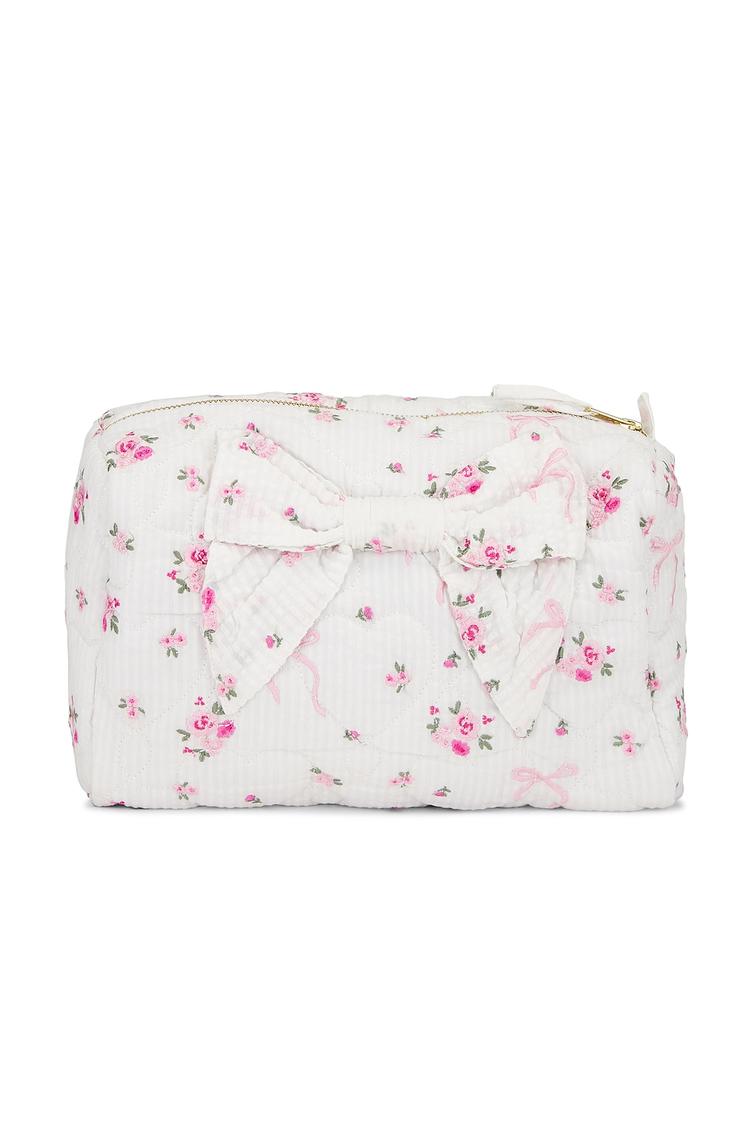Meet the Octavia Bag, a delicate floral makeup pouch from Loveshackfancy that brings romance to everyday organization. Crafted in soft cotton with a white ground, it’s sprinkled with blush pink blossoms and subtle green foliage for a feminine, timeless look. A secure top zipper opens to a single, roomy main compartment with an interior slip pocket to keep essentials neatly in place. At 28 cm wide, 15 cm high and 13 cm deep, it’s perfectly sized for cosmetics, sunglasses, or travel minis. Effortless to style—from brunch to weekend getaways—this pouch adds a touch of whimsy and refined polish to any bag.