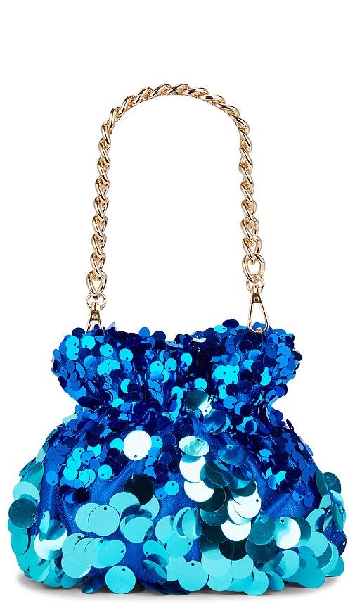 OLGA BERG PEDRO SEQUIN POUCH IN BLUE.