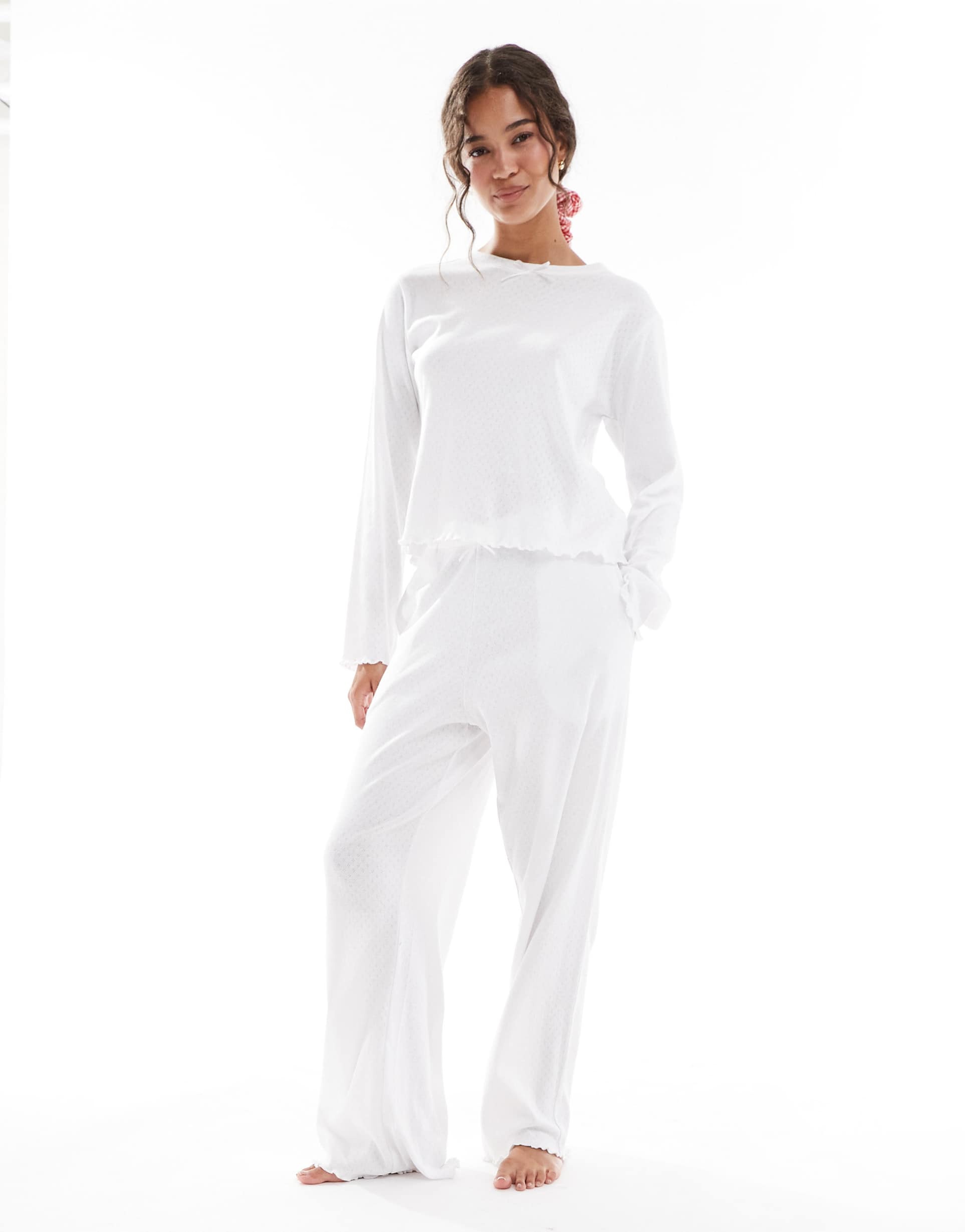 BRAVE SOUL LONG SLEEVE POINTELLE PAJAMAS IN WHITE