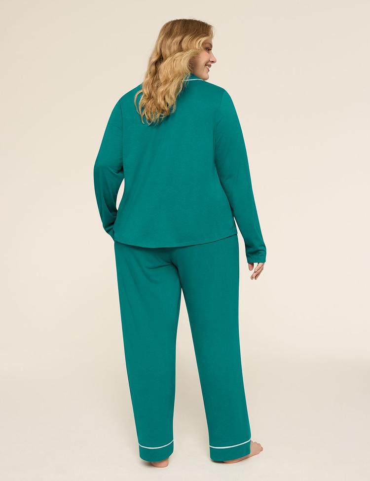 Available in Plus Size Your best dressed rest starts with this collared shirt and pant PJ set in must-have hues and our so-soft Comfy Cotton. FABRIC: Comfy Cotton. Super-soft & breathable. Machine Wash Cold With Like Colors Gentle Cycle Only Non-Chlorine Bleach When Needed Tumble Dry Low Cool Iron If Needed 60% Cotton/40% Polyester FIT: Relaxed fit shirt with classic fit pant Inseam Length: 28" FEATURES: Classic collar Long sleeves Chest pocket Pant has pockets and covered elastic waistband Item Number #413085 Imported Plus Size Sleepwear Cacique Intimates ". Plus Size Comfy Cotton Notch-Neck Shirt & Pant PJ Set, in Teal Delight, 18/20, Women's, Lane Bryant