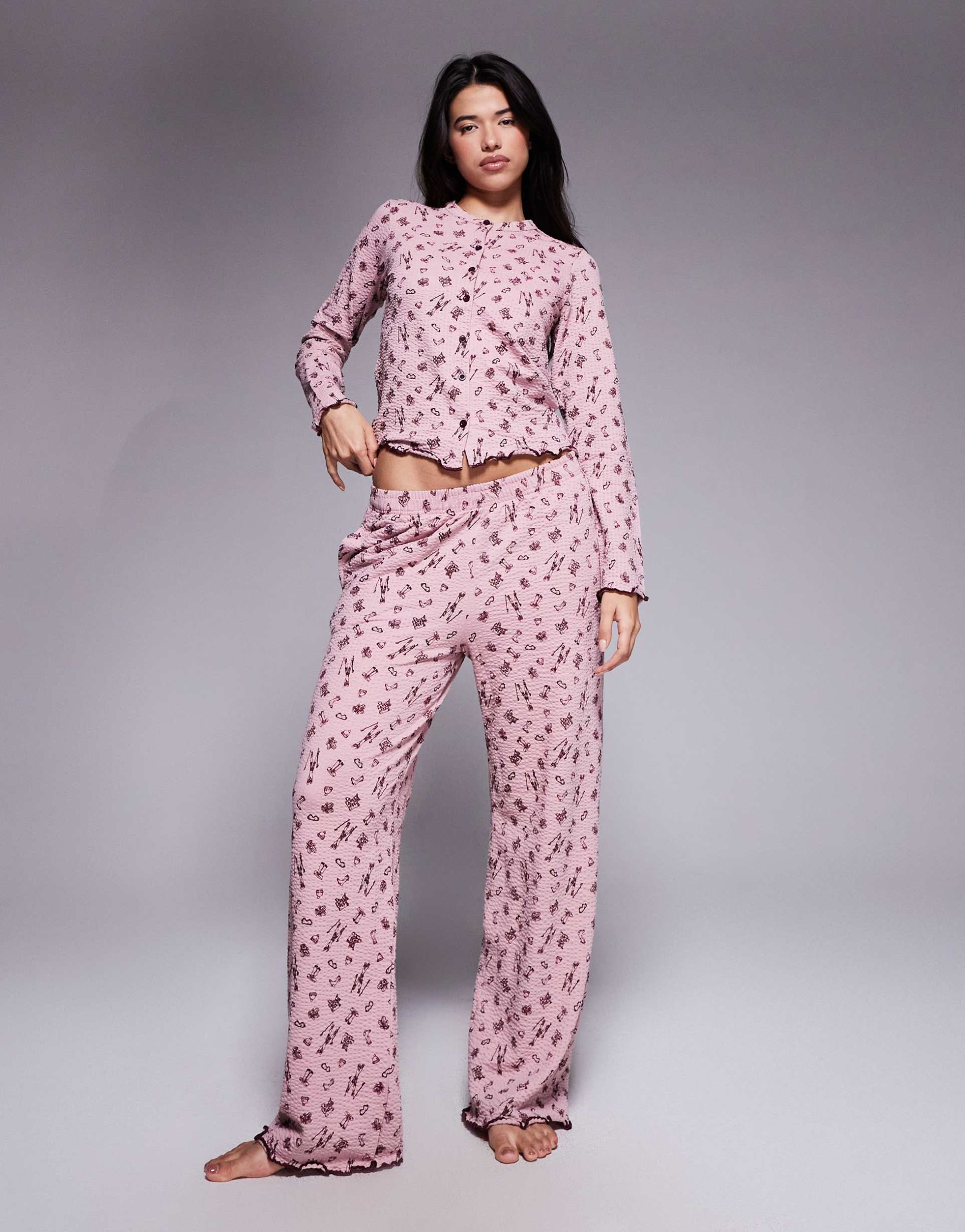 THREADBARE LONG SLEEVE BUTTON DOWN SKI PRINT PAJAMAS IN FIG