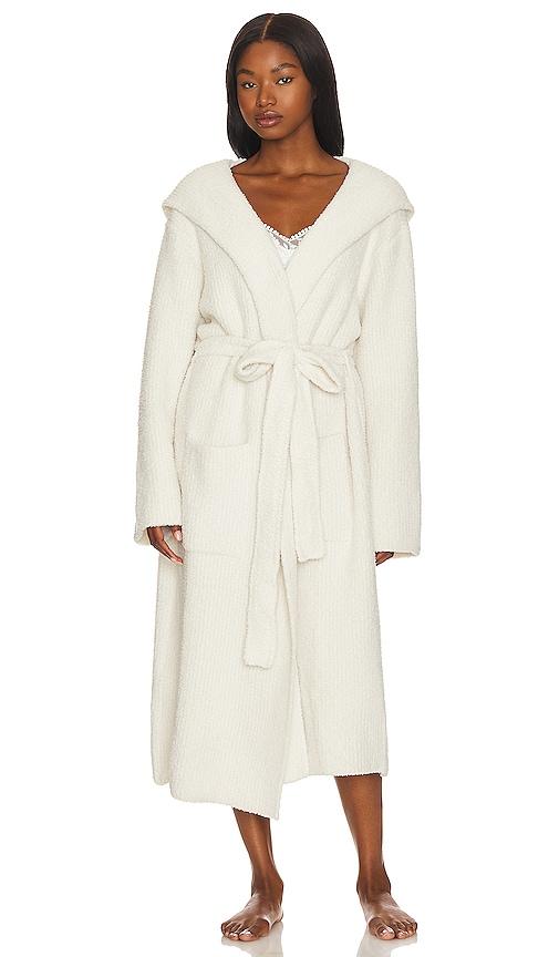 BAREFOOT DREAMS COZYCHIC RIBBED HOODED ROBE IN WHITE.