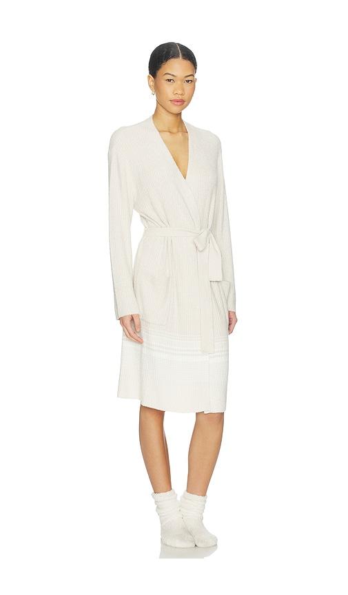 BAREFOOT DREAMS VARIEGATED STRIPE RIBBED ROBE IN BEIGE.