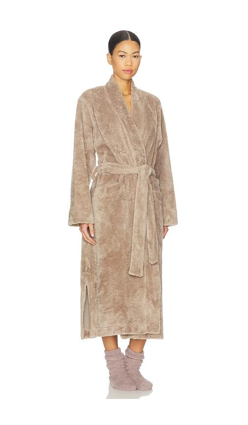 EBERJEY RENEW PLUSH LONG ROBE IN BROWN.