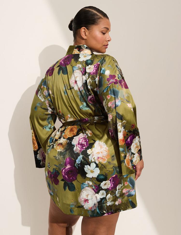 PRINTED STRETCH SATIN ROBE
