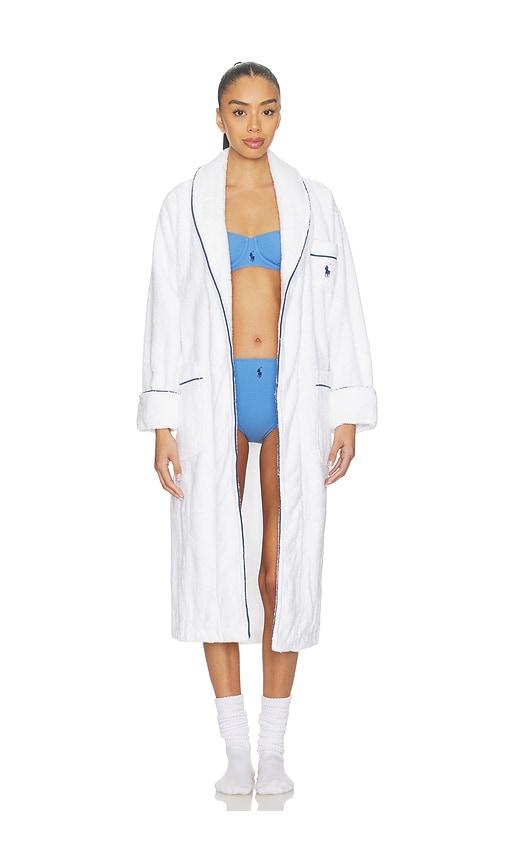 POLO RALPH LAUREN INTIMATES POLO ESSENTIALS ROBE IN WHITE.